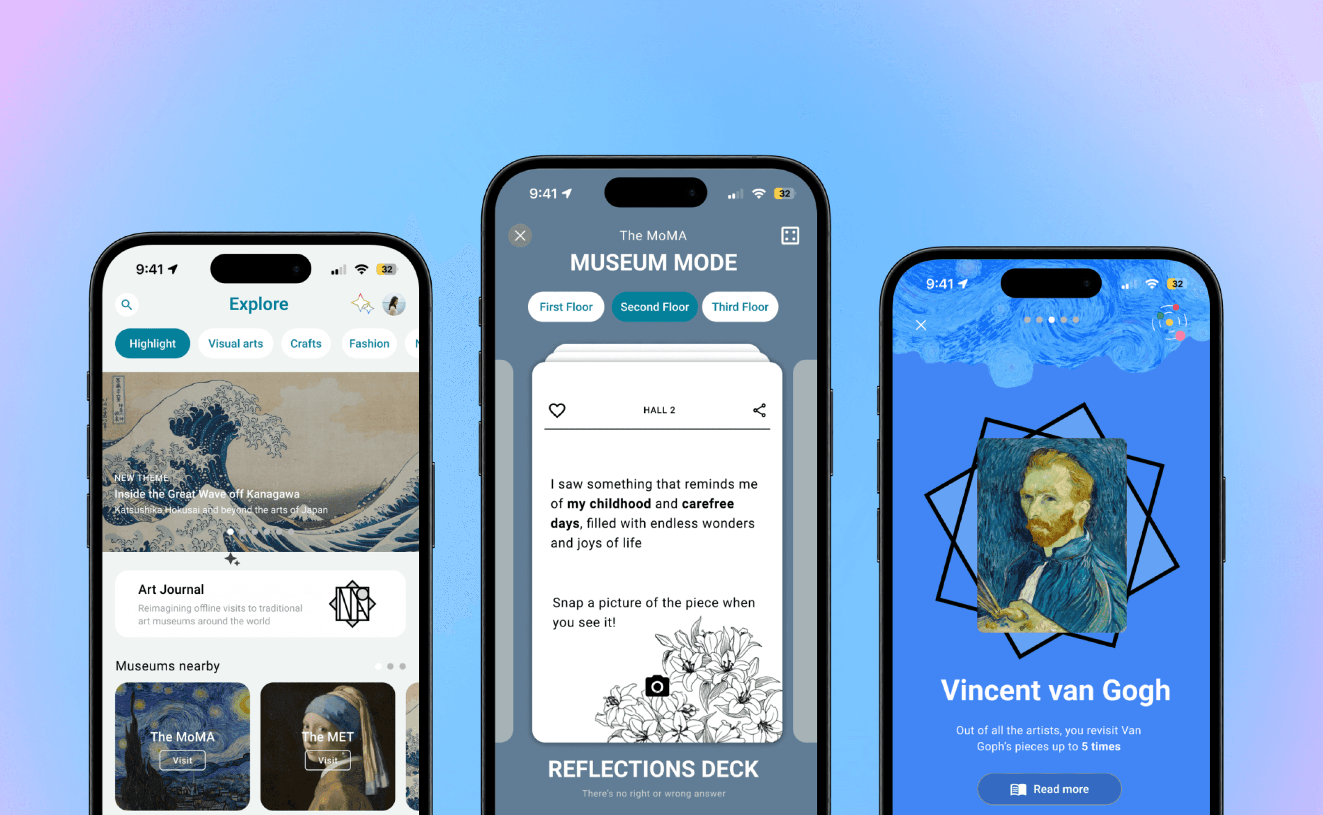 When users encounter an artwork that evokes emotions or sparks a memory, they can snap a picture to uncover more details about the piece and its meaning. After reflecting, users can save the artwork and explore reflections from other users as well.