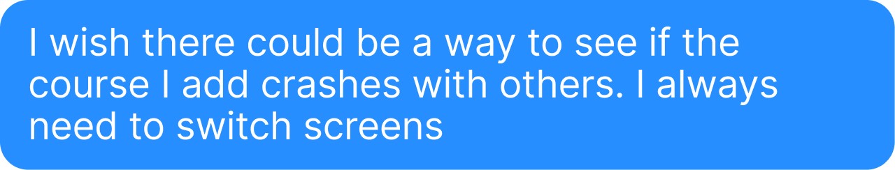 “I love how I can see if I had any time conflict right when I select the courses. This is really thoughtful design” - User 2